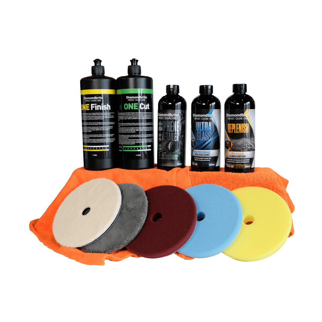 Med Diamondbrites paket får du allt du behöver för att ta hand om bilens lack från grov slipning till finpolering och långtidslackskydd – allt optimerat för 5 tums polerrondeller. Resultatet? En spegelblank, skyddad lack som imponerar oavsett väder.