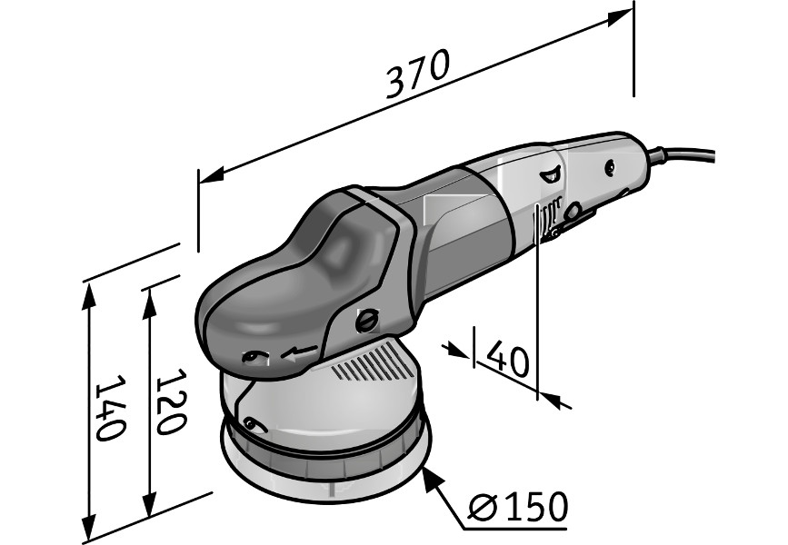 Polermaskin på 710W med en skivdiameter på 160mm, en slaglängd på 15mm och ett slagantal på mellan 2900-8600 slag i minuten.